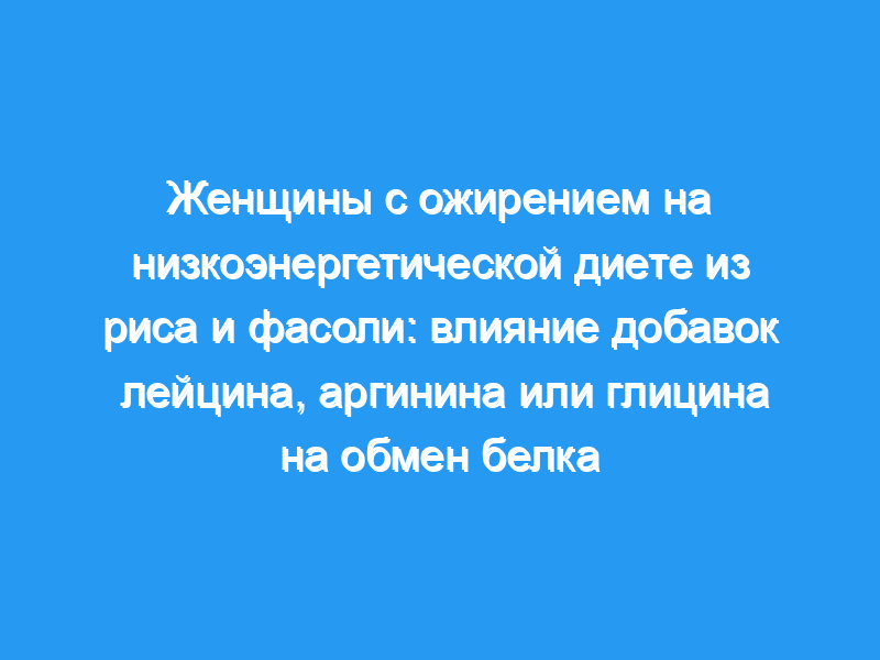 В этом исследовании изучалось, принимают ли добавки лейцина, аргинина или глицина у взрослых пациентов с ожирением (индекс массы тела 33 +/- 4 кг/м(2)) потребление бразильской низкокалорийной и белковой диеты (4,2 МДж/день и 0,6 г белка/ кг) влияет на метаболизм белка и аминокислот..