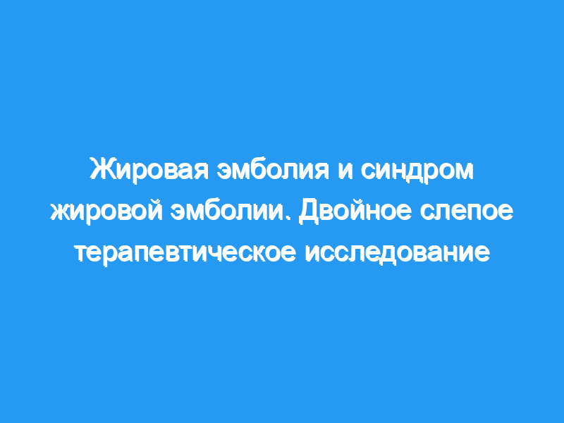 Пятьдесят пять взрослых, перенесших перелом большеберцовой кости, или перелом бедренной кости, или и то, и другое, были подвергнуты двойному слепому рандомизированному исследованию для определения эффективности метилпреднизолона в лечении синдрома жировой эмболии.