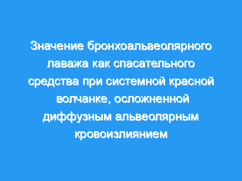 Изучить значение бронхоальвеолярного лаважа в качестве экстренного лечения пациентов с системной красной волчанкой (СКВ) с сопутствующим диффузным альвеолярным кровоизлиянием (ДАГ).