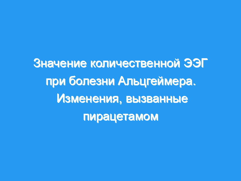 Одно исследование было проведено у 12 пациентов с пресенильной болезнью Альцгеймера (группа I), другое — у 16 пациентов с легкой сенильной деменцией типа Альцгеймера (группа II). В каждом исследовании пациенты были разделены на две рандомизированные параллельные группы, одна получала плацебо, другая пирацетам (9 г ежедневно в пирацетаме I группы и 2,4 г ежедневно в пирацетаме II группы) в течение трех месяцев пирацетам вызывал снижение мощности ЭЭГ в диапазоне 2-6 Гц (пирацетам I группы), 3-5 Гц и 7 Гц (пирацетам II группы) и увеличение мощности ЭЭГ в диапазоне 9-11 Гц (пирацетам I группы) и на частотах 10 Гц и 13 Гц (пирацетам II группы). Также было отмечено значительное улучшение в части А теста на следование в группе II piraceta.