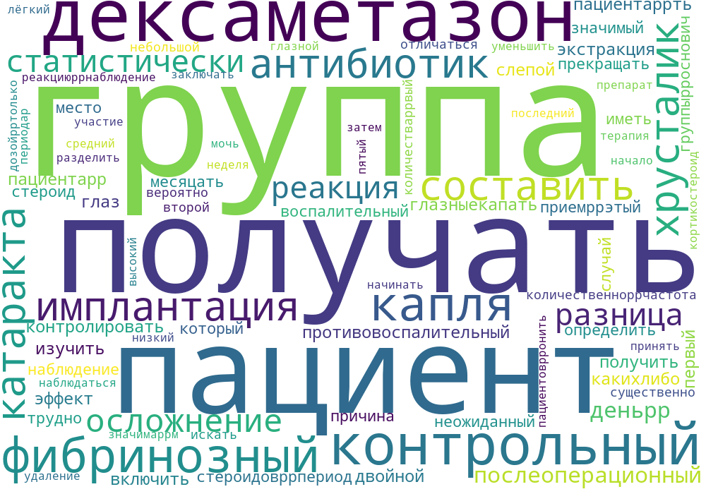 49 глаз получили глазные-капли с 0,1% дексаметазоном и антибиотиками, контрольная группа из 54 глаз получала те же антибиотики без каких-либо стероидов.