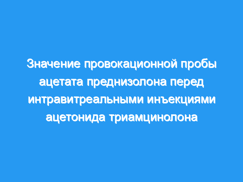 Провокационный тест на ацетат преднизолона для местного применения может быть полезным методом прогнозирования глазной гипертензии, вызванной стероидами, после интравитреального введения ацетонида триамцинолона.