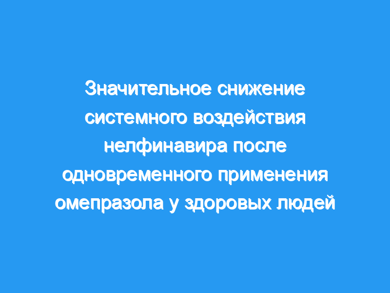 Клиническое исследовательское отделение большой учебной больницы. Участники: Двадцать здоровых добровольцев (средний возраст 26 +/- 9 лет, диапазон 18-48 лет). Вмешательство. Субъекты получали нелфинавир по 1250 мг каждые 12 часов в течение 4 дней (период 1). После 7-дневного периода вымывания испытуемым одновременно вводили нелфинавир в дозе 1250 мг каждые 12 часов и омепразол в дозе 40 мг каждые 24 часа в течение 4 дней (период 2). Измерения и основные результаты: Фармакокинетику нелфинавира и его активного метаболита М8 определяли на 4-й день обоих периодов. Образцы плазмы анализировали с помощью высокоэффективной жидкостной хроматографии-ультрафиолетового метода для определения концентраций нелфинавира и М8, а также проводили сопоставительный фармакокинетический анализ с использованием аналитического программного обеспечения. В присутствии омепразола площадь нелфинавира под кривой концентрация-время в течение интервала дозирования (AUC(tau)), максимальная наблюдаемая концентрация в плазме (C(max)) и минимальная наблюдаемая концентрация в плазме (C(min)) снижались в среднем на 36%, 37% и 39%, соответственно, по сравнению с приемом только нелфинавира. AUC (tau), C(max) и C(min) M8 были снижены в среднем на 92%, 89% и 75% соответственно. Наклоны конечной фазы элиминации нелфинавира и кривых зависимости концентрации М8 от времени в плазме крови были одинаковыми в зависимости от лечения. Нелфинавир хорошо переносился как при монотерапии, так и при одновременном применении с омепразолом.