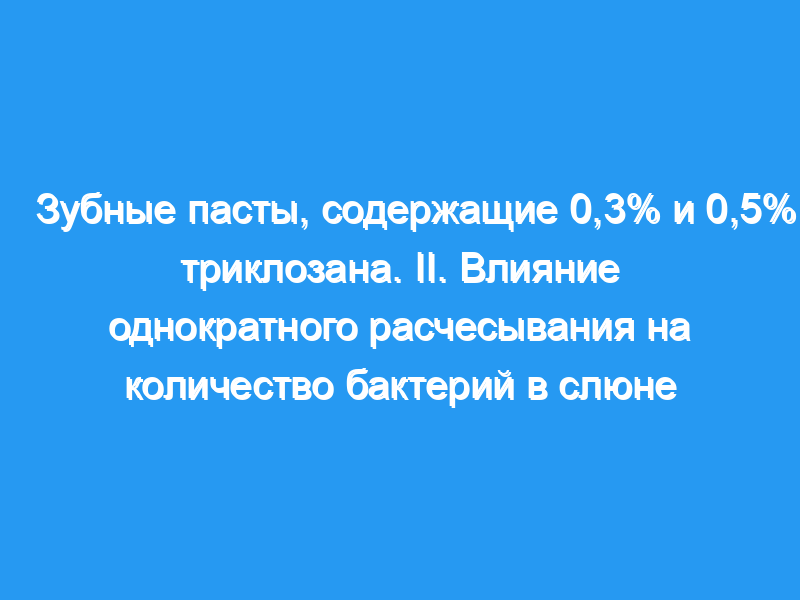 В этом исследовании оценивалось влияние однократных чисток зубов 0,3% и 0,5% триклозаном с сополимером PVM/MA в зубных пастах или без него на количество бактерий в слюне у 14 молодых взрослых.